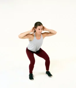 A dynamic twist on regular squats that adds rhythm while engaging your glutes and quads.