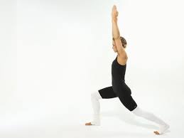 Same as Warrior I, stand with your feet about 3 feet apart. Rotate your back foot 90 degrees. Now, the front foot is pointing front, the back foot is pointing to the side, and the hips are open to the side. Bend your front knee (remember not to extend the knee beyond the toes) and raise arms out (like a T) as though you’re trying to reach the walls with your fingertips. Keep your torso centered between both legs. Hold the pose for 30 to 60 seconds. Repeat on the opposite side.