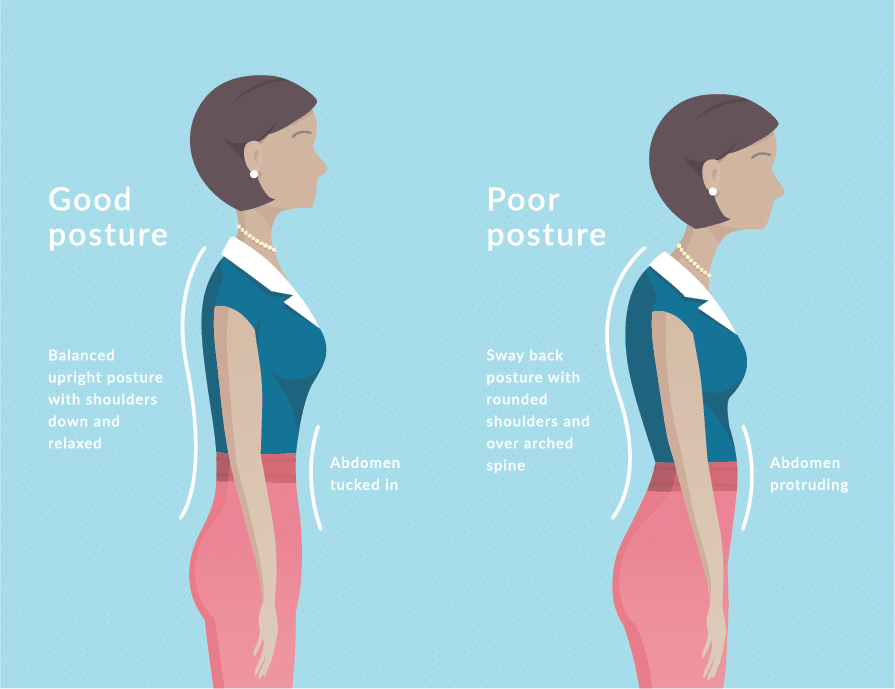 Good posture is when the body’s segments are balanced and supported by the least amount of muscular effort. To practice: