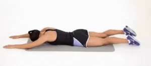 Lie face down, arms extended. Lift your chest, arms, and legs off the floor simultaneously. Hold for 2 seconds.